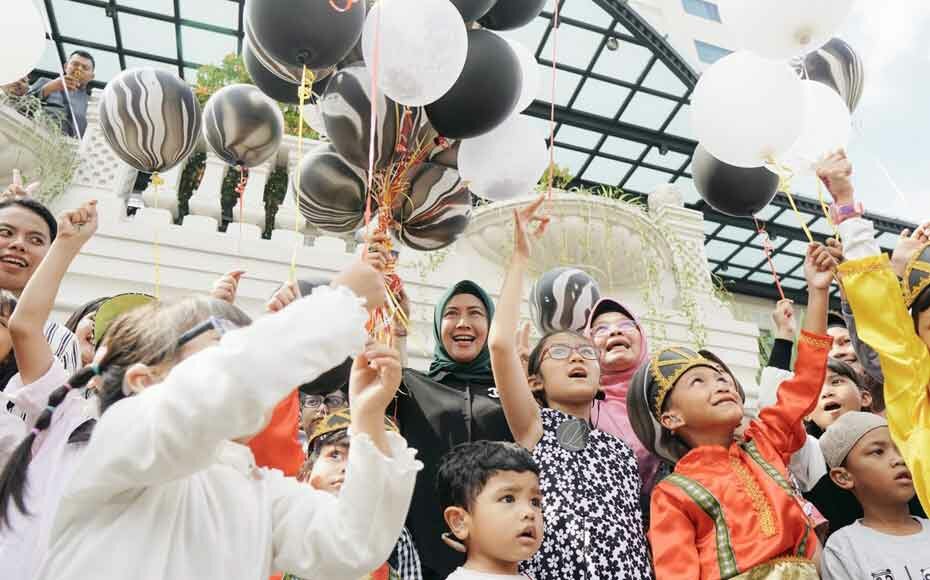 Istri Wakil Gubernur Sumut (Wagubsu), Musa Rajekshah, ini, tersenyum gembira. Sri langsung disambut senyuman anak-anak penyandang disabilitas tuli dengan puluhan balon yang siap diterbangkan sebagai simbol perayaan ulang tahun yang kelima Smart Aurica School.