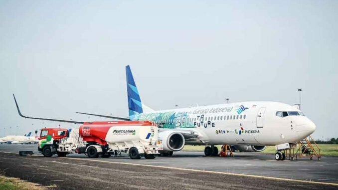 JAKARTA | Pertamina dan Garuda Indonesia melaksanakan penerbangan komersil perdana menggunakan bahan bakar ramah lingkungan, Pertamina Sustainable Aviation Fuel (SAF) atau Bioavtur. Ceremonial Flight Sustainable Aviation Fuel tersebut digelar di Terminal 3 Bandara Internasional Soekarno-Hatta pada Jumat (27/10/2023). Penerbangan dari Bandara Soekarno-Hatta (Tangerang) menuju Bandara Adi Soemarmo (Surakarta), dan kembali ke Jakarta dengan bahan bakar aviasi ramah lingkungan ini menjadi bukti kontribusi kolaborasi BUMN pada upaya penurunan emisi dan mendukung pencapaian target Net Zero Emission.