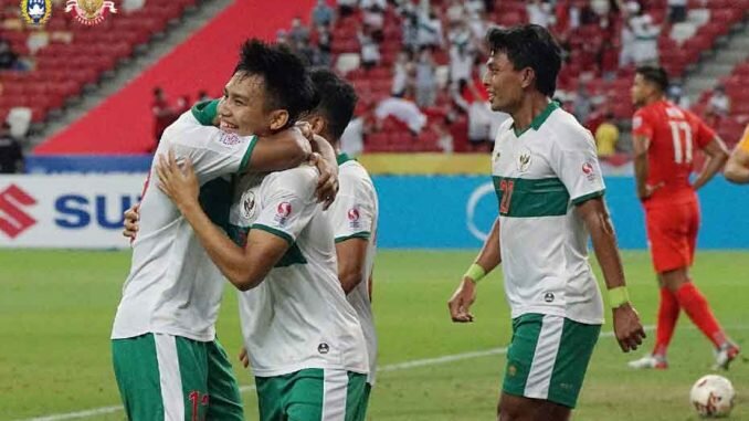 SINGAPURA | Timnas Indonesia berhadapan dengan Singapura dalam Semifinal Piala AFF 2020/2021 leg I di National Stadium, Singapura, Rabu (22/12/2021) malam ini. Di babak pertama, Witan Sulaeman, berhasil mencetak gol pertama bagi Indonesia di menit ke-28.